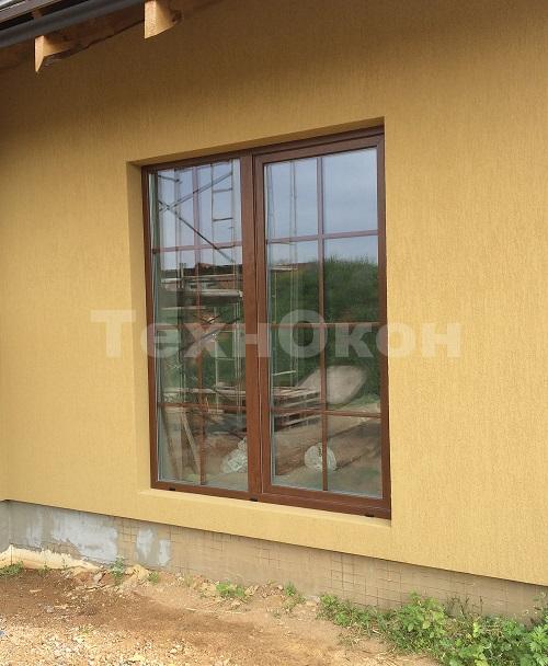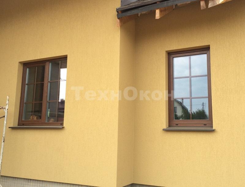 Профиль Schuco Corona CT 70, фурнитура Schuco Vario Tec. Шпрос 18мм, ламинация Renolit, цвет - Орех.